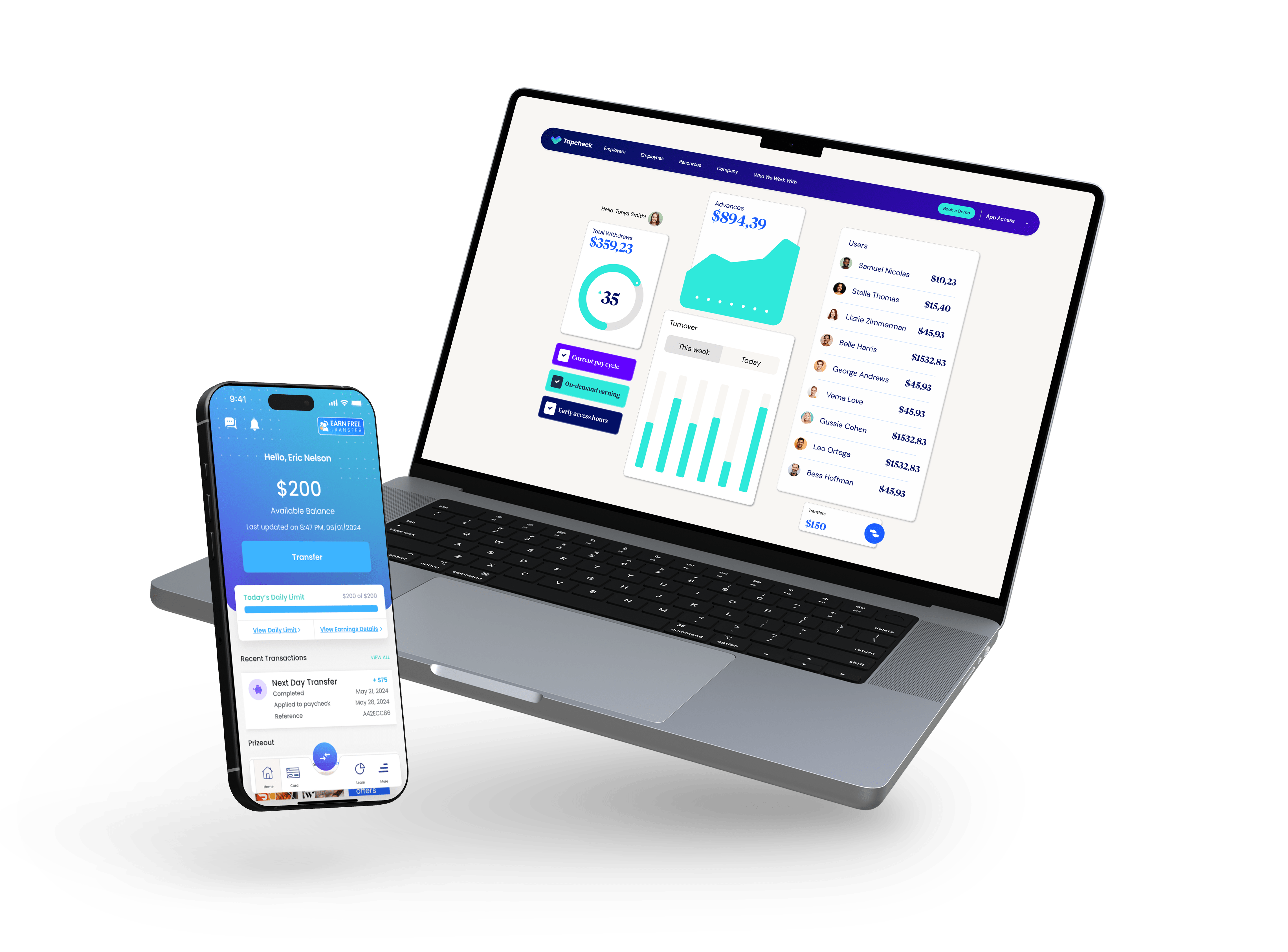 While others approximate, Tapcheck delivers earned wages with unmatched precision. Join 12,000+ businesses who chose accuracy over guesswork.